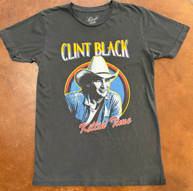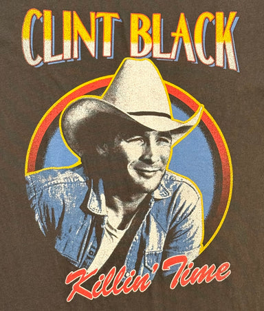 Clint Black Killin' Time Unisex Tee in Vintage Black. Unisex Vintage Style Tee. 100% cotton shirt with raw hemlines to help it age to pure vintag...