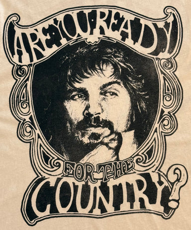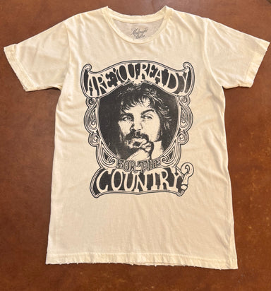Waylon Jennings Are You Ready For The Country unisex tee in vintage white. Unisex Vintage Style Tee. 100% cotton shirt with raw hemlines to help ...