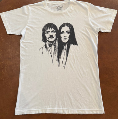 Sonny and Cher Portrait Unisex Vintage Style Tee. 100% cotton shirt with raw hemlines to help it age to pure vintage perfection! Vintage white Mad...