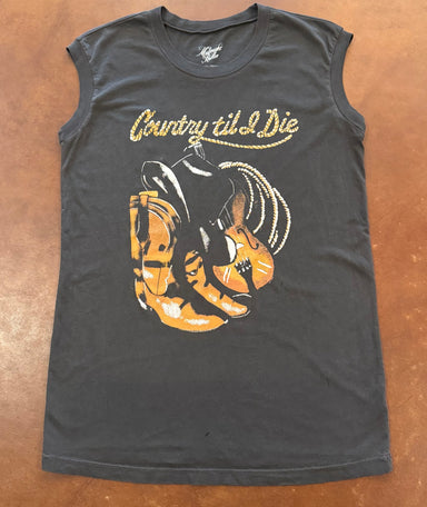 Country til I Die Muscle Tee in Vintage Black Vintage Style Muscle Tee. 100% cotton shirt. Vintage black Made in the U.S.A.